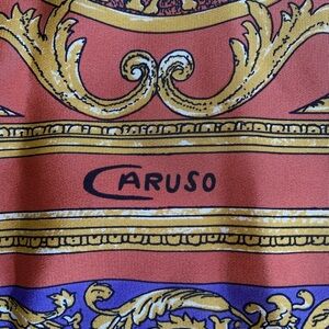 Vintage Caruso Printed Scarf 100% Seta Pura Purple Gold Graphic Print Old Money