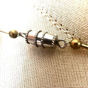 Condition: Vintage good — light age patina to brass tubes and normal surface wear to the stone beads; clasp works smoothly.