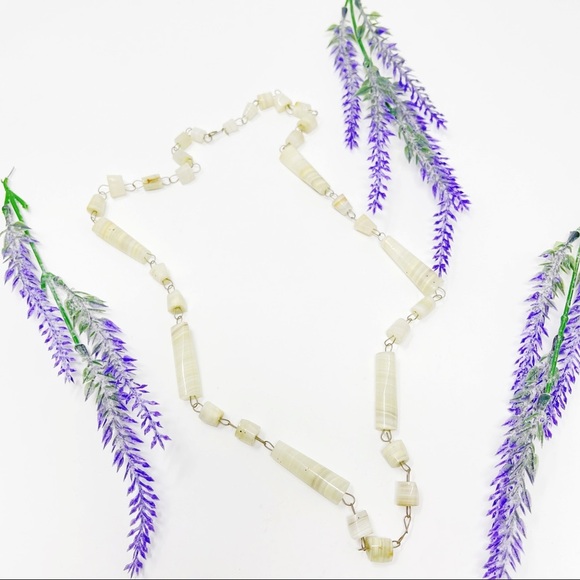 Beautiful green/white toned carved genuine alabaster metal linked necklace