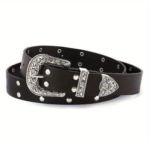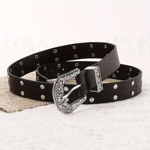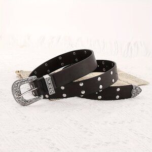 Vintage Carved Belt for Women, Punk Round Rivet Metal Embellished Belt