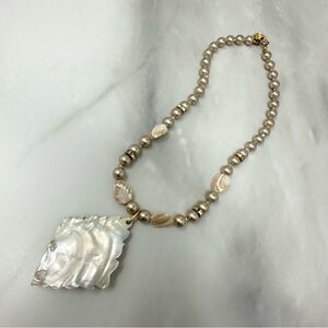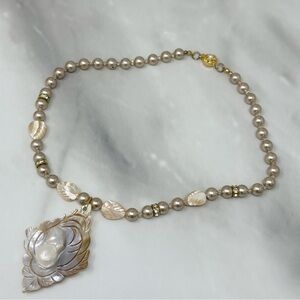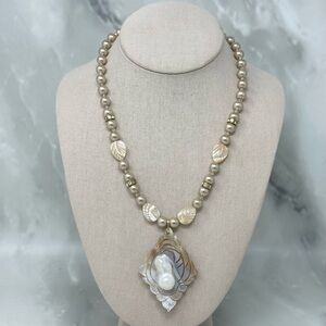 Vintage Carved Blister Pearl Mother of Pearl Beaded Necklace