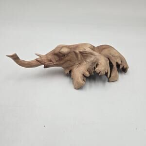 Vintage Carved Burl Wood Knot Elephant Head Art Sculpture Trunk Up Rustic