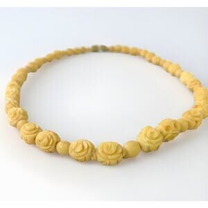 Vintage Carved Cabbage Rose Bead Necklace - Broken Clasp