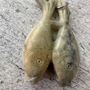 Vintage Carved Celadon Green Jade Pisces Zodiac Pair Fish Necklace