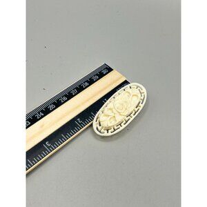 Vintage Carved Celluloid Ivory White Floral Brooch Pin Intricate Rose Design
