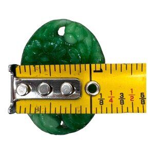 Vintage Carved Green Jade Glass Oval Pendant Floral FLowers 1.5" Jadeite Estate