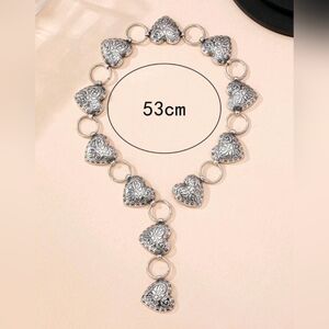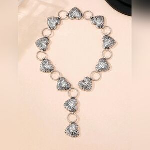 This exquisite silver necklace features a Y-shaped design adorned with heart shape . The continuous strand of rounded beads creates an elegant and flowing look, perfect for adding a touch of sophistication to any ensemble.