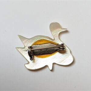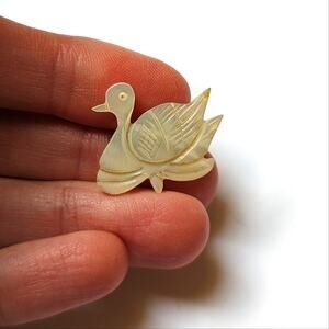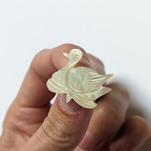Vintage Carved Mother Of Pearl Shell Figural Nesting Duck Swan Delicate Brooch