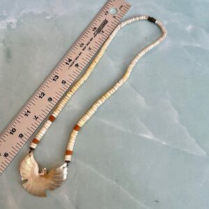 Vintage Carved Mother of Pearl Thunderbird Necklace Heishi Beads