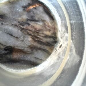 There is visible damage on the side and inside, including a small hole (shown in photos). The surface still feels smooth to the touch.