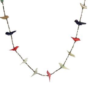 Vintage Carved Stone Bird Fetish Necklace Multicolor Southwestern Boho 26"