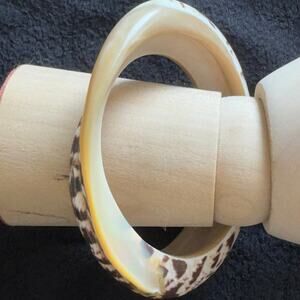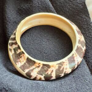 Vintage Carved Tiger Cowrie Polished Shell Bangle Bracelet Mother of Pearl Boho