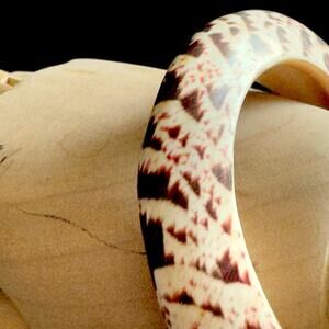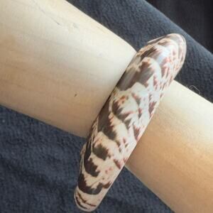 Vintage Tiger Cowrie Shell Bangle Bracelet – Carved & Polished Natural Shell- for a smaller hand