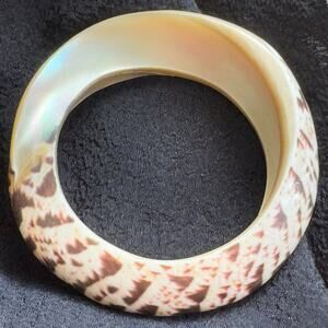 This is not an inlay or mosaic piece — the bracelet seems to have been cut and polished from one solid shell, showcasing the natural beauty of its form.