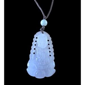 Up for sale is a - Carved White Jade Pendant Necklace Quan Yin Motif