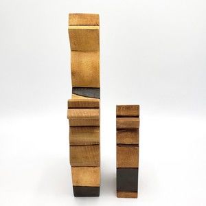 Vintage Carved Wood Easter Rabbit Figurines Folk Art Bunny Dual Side Cottagecore
