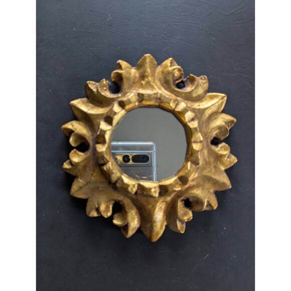 Vintage Carved Wood Gold Gilt Sun Mirror 6" - made in Italy
