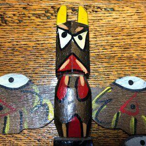 Vintage Carved Wood Native American Totem Pole Lot of 2