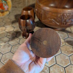Vintage Carved Wood Punch Bowl & 5 Cups *NOT WATERTIGHT*