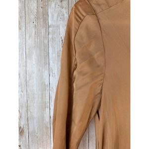 Vintage Carven Dress 40 Camel Faux Draped Two Textured Flare Skirt Keyhole Y2K