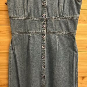 Vintage Casablanca Size Medium Denim Button Front Collared Sleeveless Maxi Dress