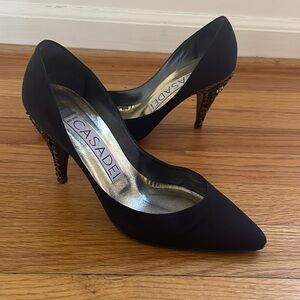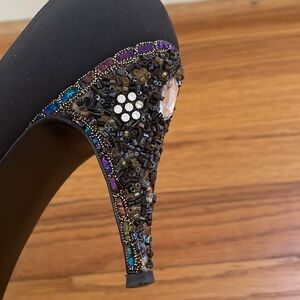Vintage Casadei Embellished Black Heel Rhinestone Beaded Made in Italy Women 6.5