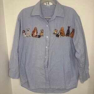 Vintage Casey Coleman Denim Shirt with Embroidered Dogs Women’s Size M/L Button