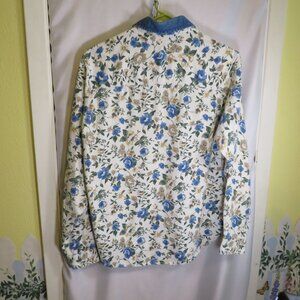 Vintage Casey & Max 100% cotton Floral Corduroy w Denim Collar