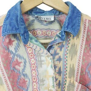 Vintage Casey & Max Southwest Long Sleeve Button Up Shirt Size M Western Denim