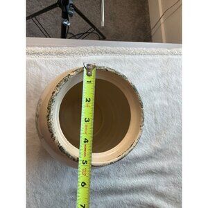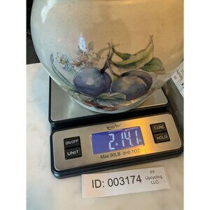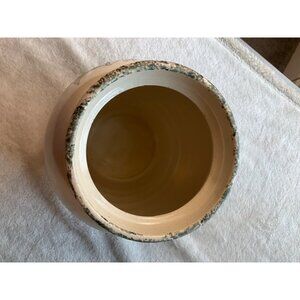 Vintage Casey Pottery Signed Vase Jar Fruit Plums and Cherries Cottagecore 6"x5", Handmade in USA Marshall Texas, Glossy finish, Beige base and colored fruits pattern, Very good condition.