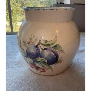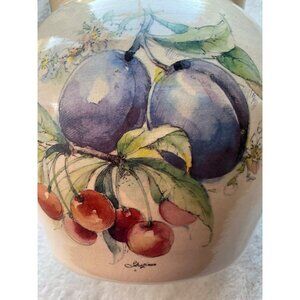 Vintage Casey Pottery Signed Vase Jar Fruit Plums and Cherries Handmade USA 6"x5