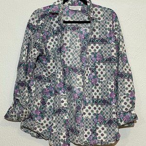 Vintage Casey and Max Purple and White Pattern Button Down M Medium
