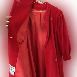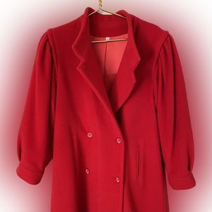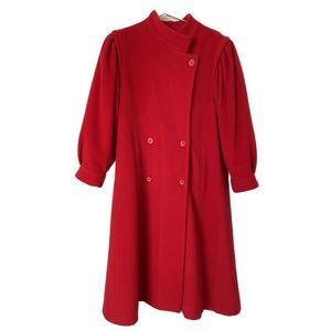 Vintage Cashmere Peabody House 80s Bubble Sleeve Double Breasted Trench Coat Red