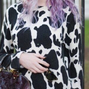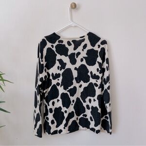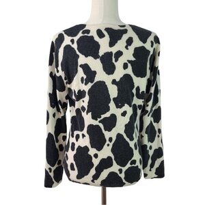 Vintage Cashmere/Silk Blend Cow Print Talbots Crewneck Sweater size L