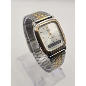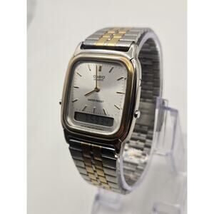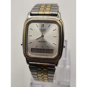 Vintage Casio AQ-307 Gold Tone 30mm Analog-Digital Watch. New Battery.