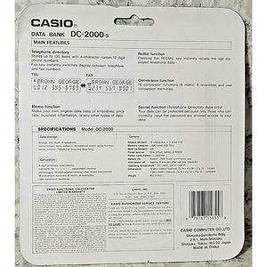 Vintage Casio Data Bank DC-2000-s 130 Tel & Fax Hand Held Digital Organizer. In original sealed Blister pack.