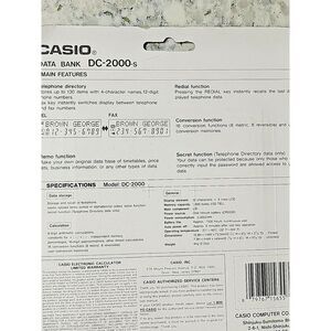 Vintage Casio Data Bank DC-2000-s 130 Tel & Fax Hand Held Digital Organizer