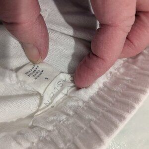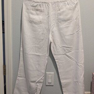 Perfectly lovely, in excellent shape, white linen pants by Caslon. It has two side pockets and two pockets in the back and a gathered waist in back. Not sure of the year of this design but over 20 years old and still very chic! Little wider legs, not a straight leg pant and light linen probably perfect for a cruise or beach vacation.