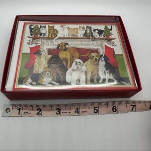 Vintage Caspari Cats and Dogs Print Holiday Christmas Cards Lot of 11