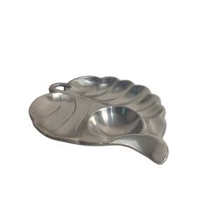 Vintage Cast Craft pewter-look chip and dip tray, handmade in Columbia, PA. Features a large 14" x 11" leaf design—great for entertaining or as a decorative collectible. Made from durable aluminum with detailed texture and craftsmanship.