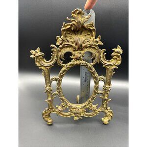 Vintage Cast Gold Metal Ornate Rococo Victorian Style Easel Picture Frame READ