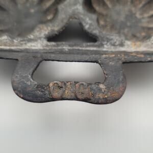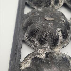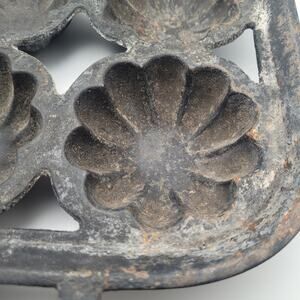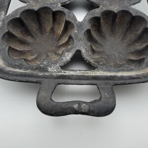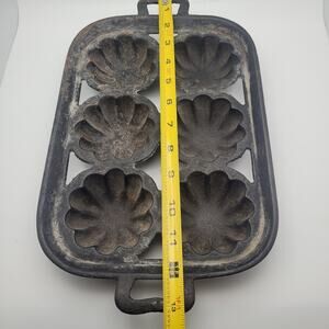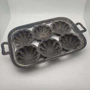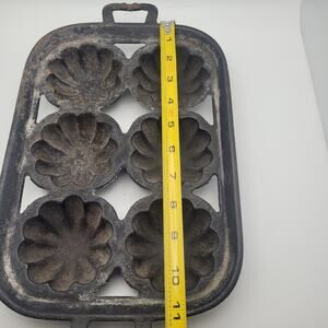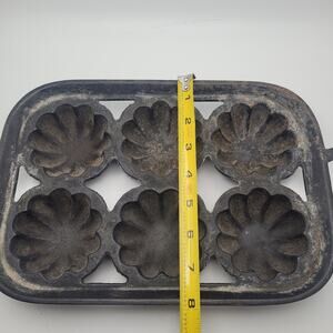 Vintage cast iron baking mold with 6 fluted flower-shaped cups
