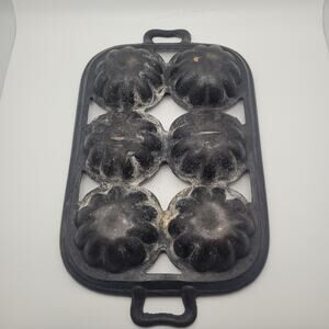 Vintage Cast Iron 6 Well Turks Head Gem Mold Pan Corn Bread Rustic Bakeware