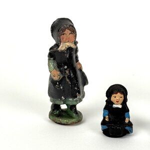 Vintage Cast Iron Amish Family 4 Piece Figurine Set Hand-Painted Folk Art Toys