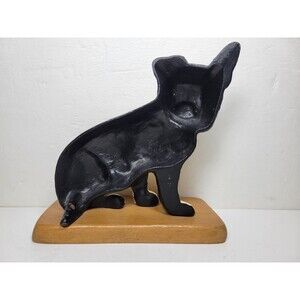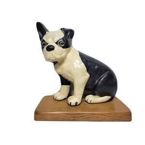 Vintage Cast Iron Boston Terrier Black White Doorstop mounted Pug Dog puppy