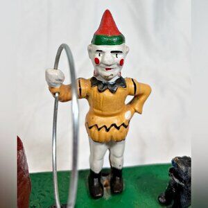 Vintage Cast Iron Circus Clown Trick Dog Hoop Working Mechanical Coin Bank