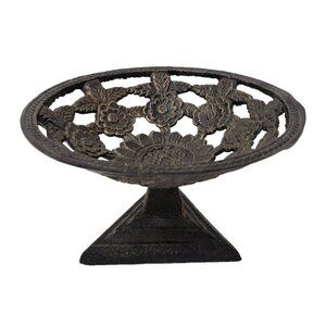 Vintage Cast Iron Decorative Pedestal Bowl Centerpiece Ornate Floral Design MCM