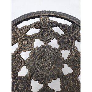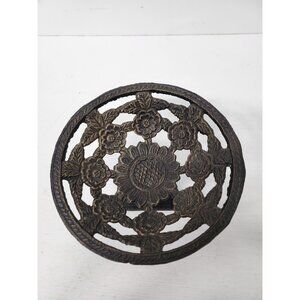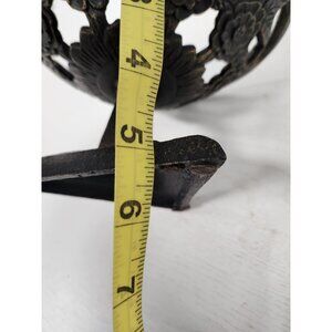 Vintage Cast Iron Decorative Pedestal Bowl Centerpiece Ornate Floral Design MCM