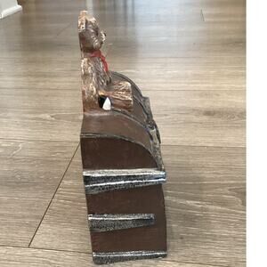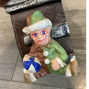 Vintage Cast Iron Door Stopper Bear Elf Jester Brown Chest Farmhouse Kids Room