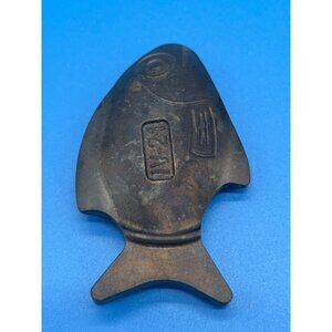Vintage Cast Iron Fish Paperweight/Decorative Object With Canadian Maple Leaf Ma